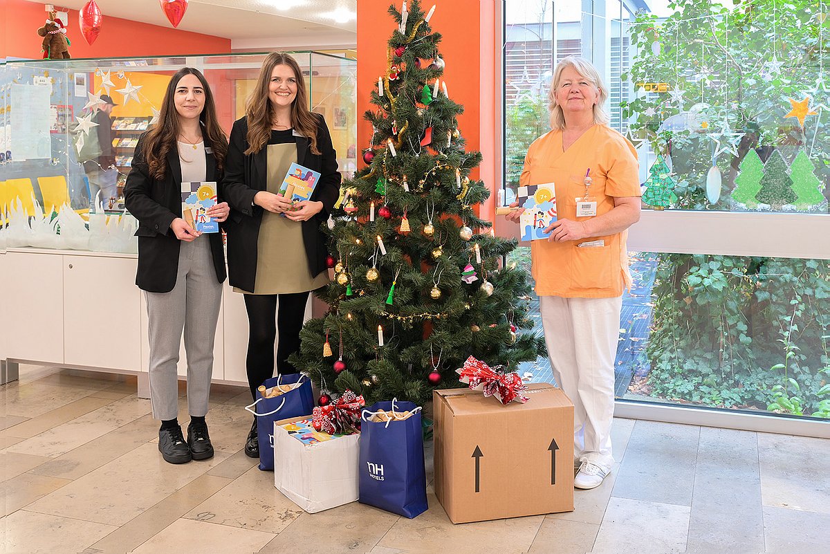 Das NH Hotel Erlangen brachte fröhliche Farben, Malbücher, Kosmetiksets und Raum für Fantasie in die Kinder- und Jugendklinik (Direktor: Prof. Dr. Joachim Wölfle) des Uniklinikums Erlangen. Die Idee zur kreativen Spende entstand im Rahmen des jährlichen Programms „Together with love“, bei dem das Hotel für einen wohltätigen Zweck spendet. Sandra Behm, Assistant Managerin und stellvertretende Managerin des NH Hotels Erlangen, Frontoffice Managerin Larissa Bidner und ihr Team entschieden sich in diesem Jahr bewusst für eine Spende an die Erlanger Kinderklinik. Das Erzieherinnenteam der Kinderklinik um Leiterin Marion Müller bedankte sich herzlich im Namen der jungen Patientinnen und Patienten für die jeweils 300 Malbücher, Sets mit Wachsmalstiften und Kosmetiktaschen, die unter anderem Zahnbürste, Zahnpasta und Schwämmchen enthielten.
