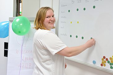 Nach jeder Schicht und immer freitags geben die angehenden Pflegefachkräfte Feedback – und bekommen auch welches zurück. „Am Ende der Woche entscheiden die erfahrenen Pflegefachkräfte der Station gemeinsam, ob die oder der Auszubildende in die nächsthöhere Phase der Verantwortungsübernahme aufsteigt oder noch in der aktuellen Phase bleibt“, erklärt Olga Oliger. „Die Dauer der einzelnen Phasen ist also von Person zu Person ganz unterschiedlich.“