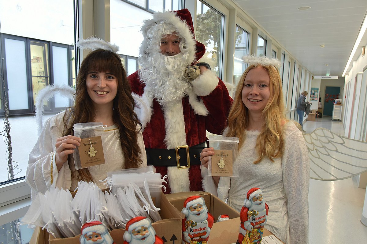 Der vorweihnachtliche Besuch wird seit 1988 vom Erzieherteam der Kinderklinik des Uniklinikums Erlangen organisiert, in diesem Jahr von der leitenden Erzieherin Marion Müller. Kim Neufend und Karoline Müller waren das erste Mal als Engel mit dabei. Gerade auf den Stationen ist die Freude über den besonderen Besuch groß: Der kleine Ben in einem der Isolationszimmer der Stammzell-/Knochenmarktransplantationseinheit plante etwa gleich, die Geschenktüte mit seiner Oma zu teilen, die ihn häufig besucht.